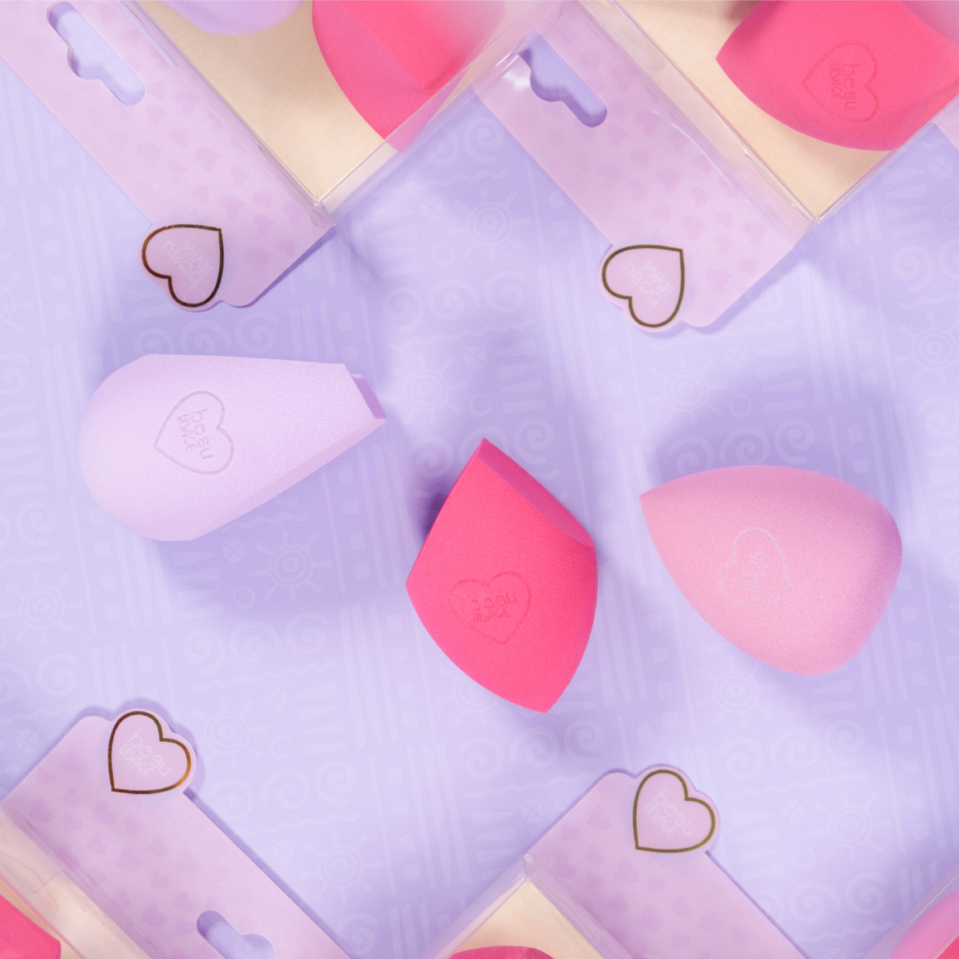 Este juego incluye tres esponjas versátiles: una con forma de gota para una aplicación uniforme de la base, una con doble biselado para contornos precisos y una tercera punta facetada para detalles finos.