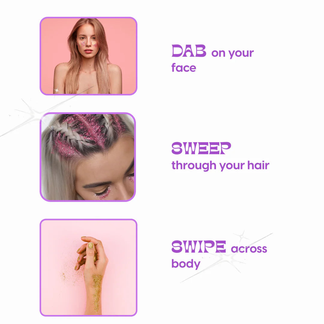 Magia multiusos: Ideal para el cuerpo, el cabello o cualquier look creativo.